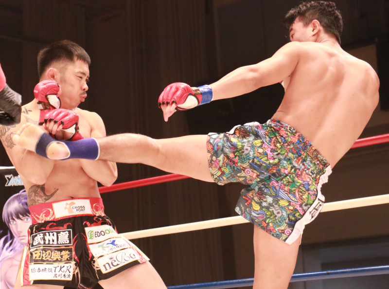 強烈なキックを蹴るデンサヤーム
