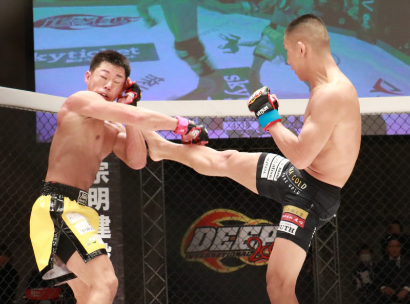 強烈なキックで攻める雅