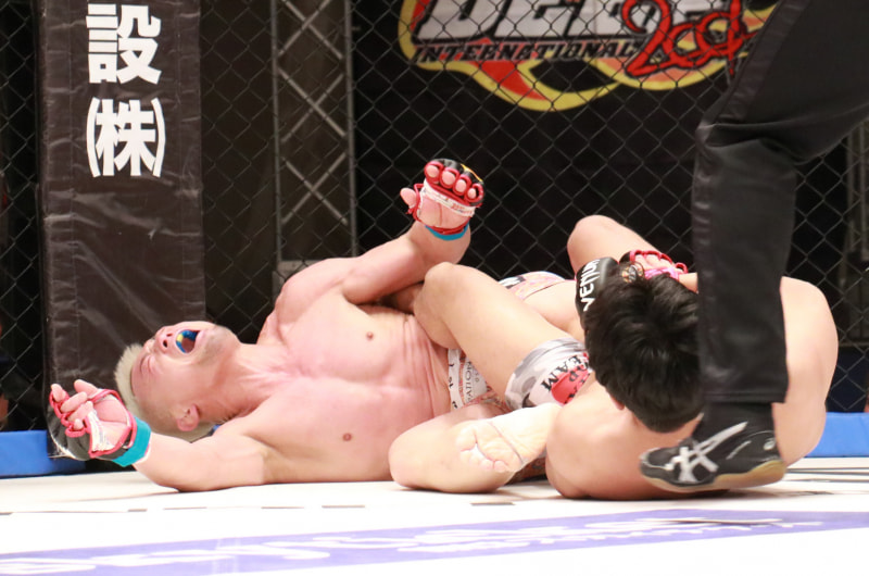 ヒールホールドを極める佐々木、太田は苦しい顔