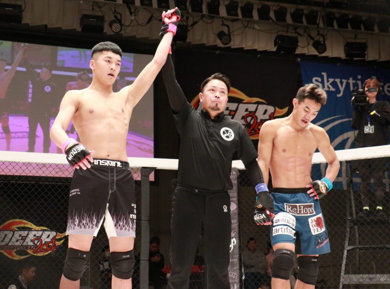 菅(左)がMMAデビュー戦の小柴(右)に勝利