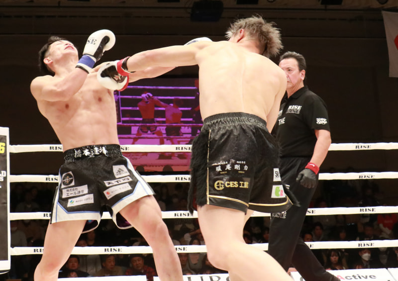 澤谷のパンチに顔が跳ね上がる安本