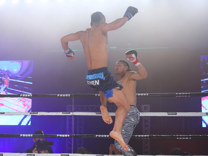 飛びヒザを繰り出す安彦©︎RISE CREATION