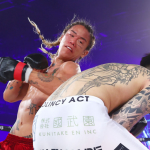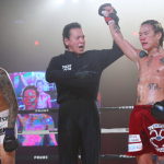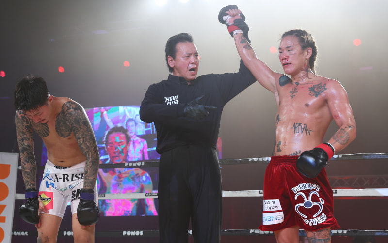 勝ち名乗りを受ける山口、鼻から出血していた©︎RISE CREATION