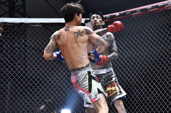 至近距離で殴り合う両者