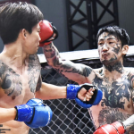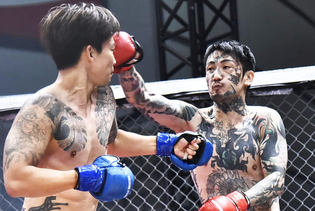 瓜田(右)が萩原にKO負けを喫した