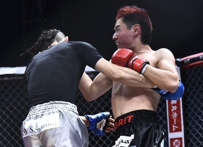 パンチを打ち込む山川