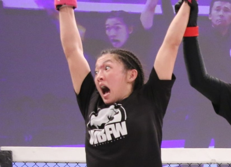 勝ち名乗りを受けた松田はビックリした表情