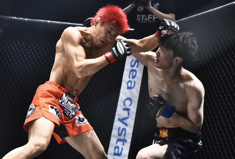 安芸(右)がパンチを放つ