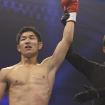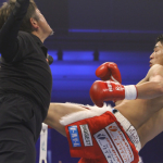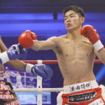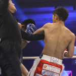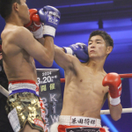 兼田(右)がダウサヤームにパンチを当てる