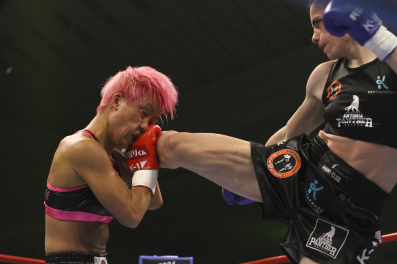 プリフティの強烈なキック!KANAの顔が歪む