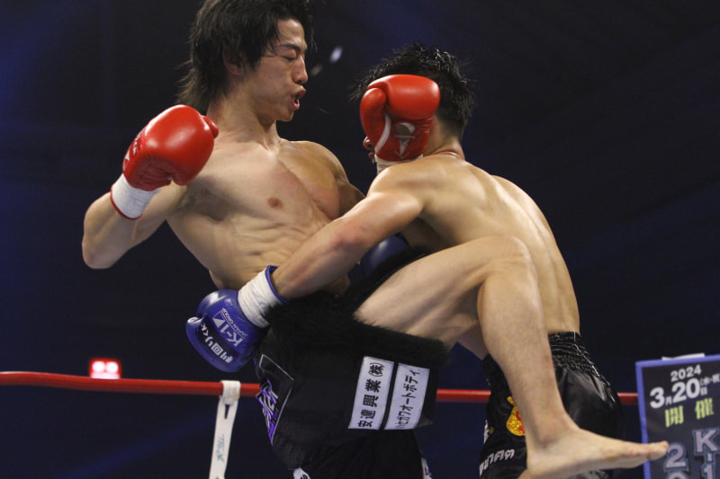 金子がヒザ蹴りを放つ
