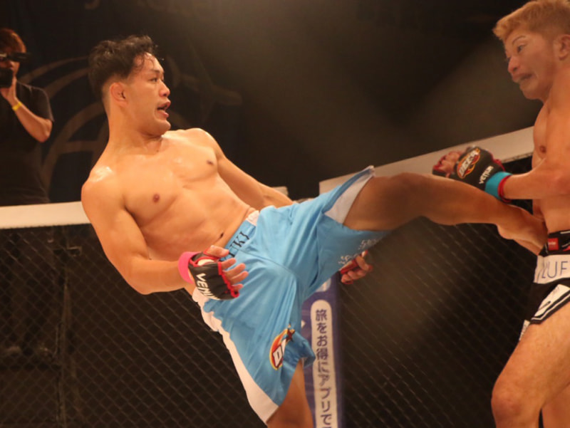 川名がミドルを蹴り込む