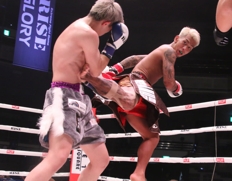岩郷がキックを蹴り込む