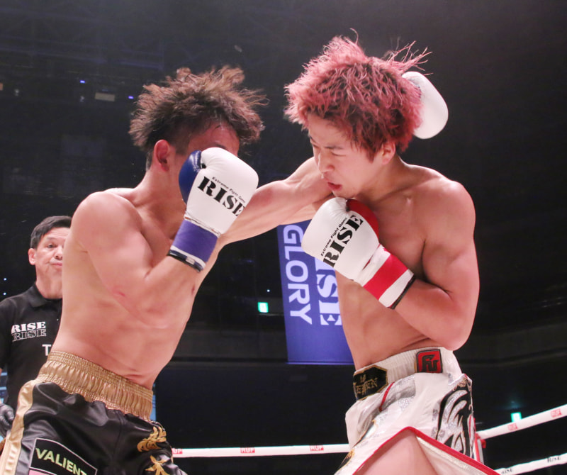 パンチで攻める那須川龍心(右)