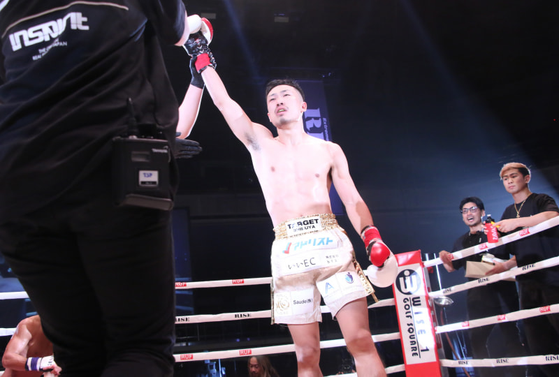 勝ち名乗りを受ける常陸、セコンドにYA-MANの姿も