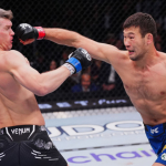 無敗ラフモノフ(右)がパンチを放つ、トンプソンに一本勝ち©️UFC