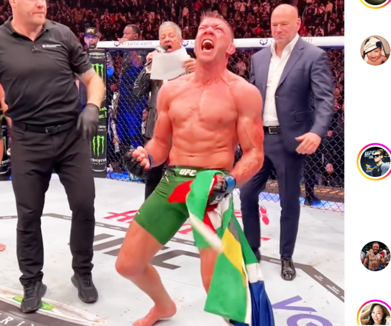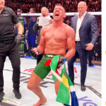 南アフリカの国旗を手に、喜びを爆発させるミドル級新王者ドリカス・デュ・プレシ@UFC