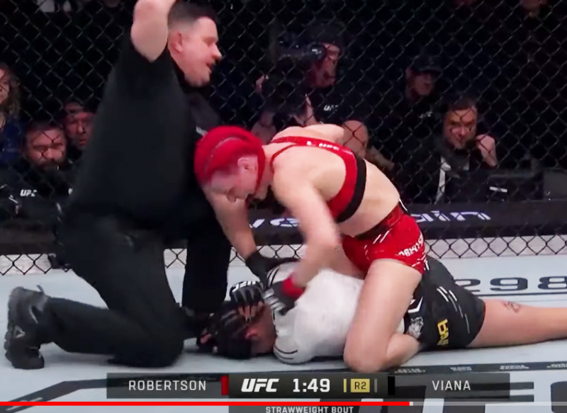 何もできないヴィアナ、レフェリーがストップ!(UFC JAPAN公式YouTubeより)