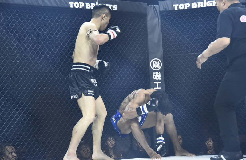 最後はローキックで仕留めた