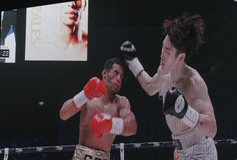 カニサレスのダウンの瞬間(会場の大型スクリーンより)