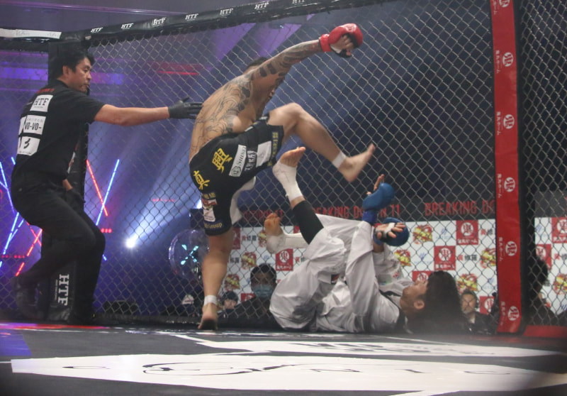 踏みつけを行う松井