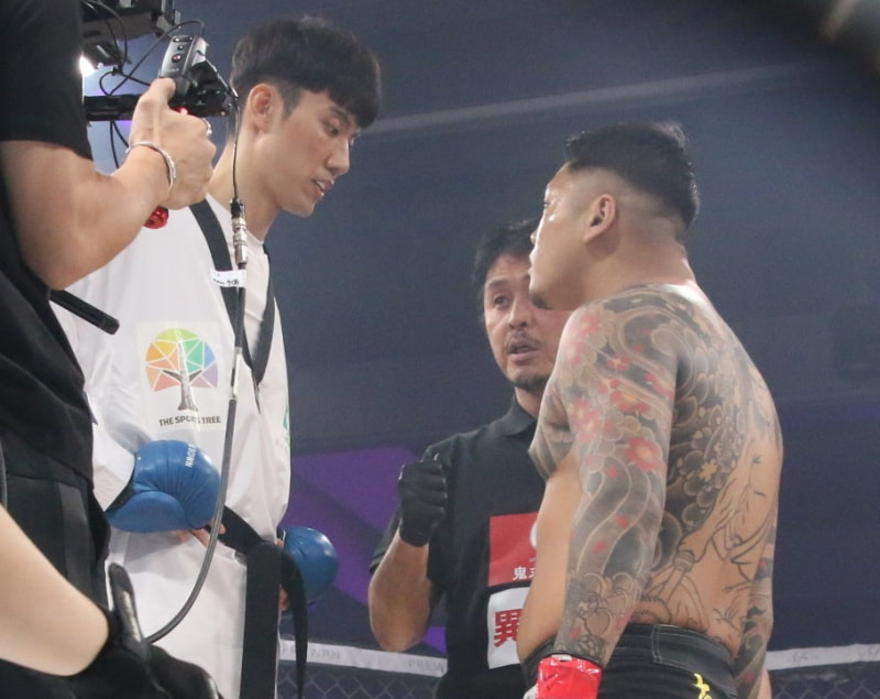 身長198cmの江畑(左)が松井を見下ろす