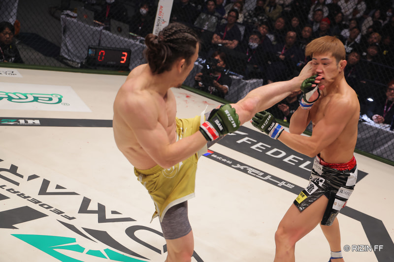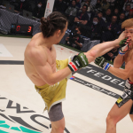 矢地も左ハイキックをヒットさせる