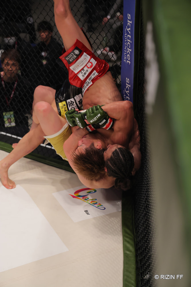 矢地が足をかけてバックを取りに行く