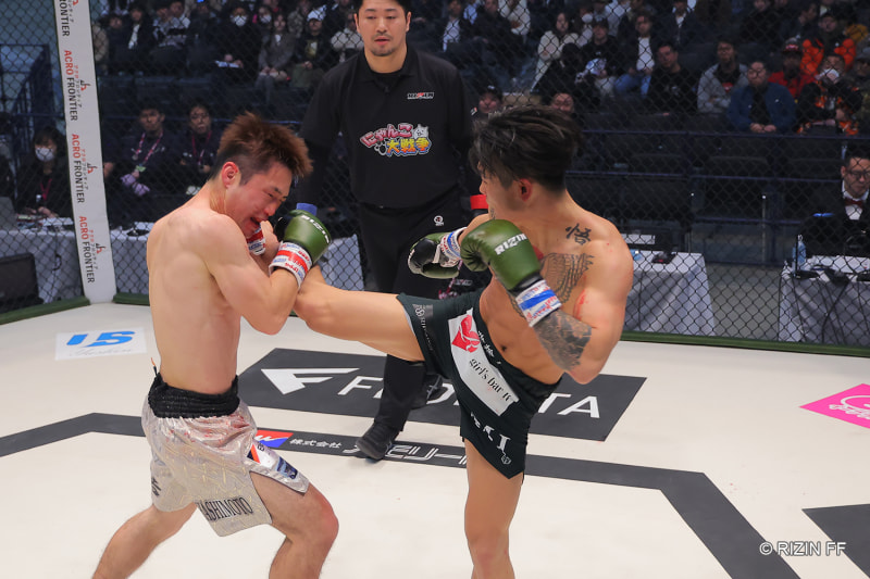 力斗(右)が判定勝利