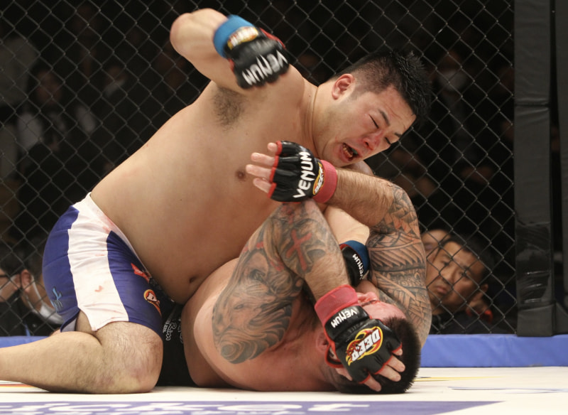 酒井がパウンドを打ち下ろす
