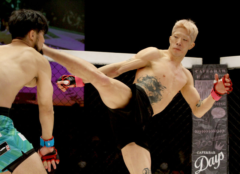 ハイキックで攻めるソンハ