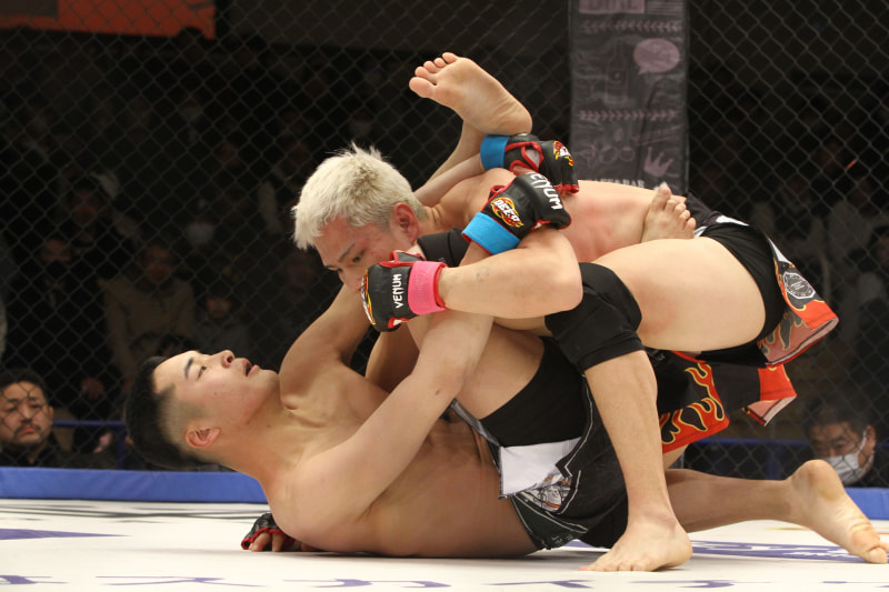 テイクダウンに成功した信原