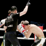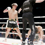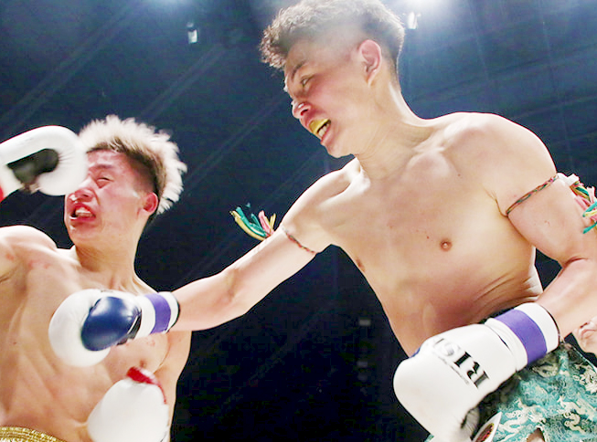 ダウン応酬の末にK-1の齋藤(右)がKO勝利した