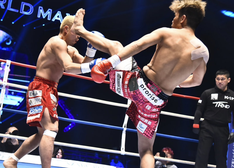 ハイキックを放つ大沢