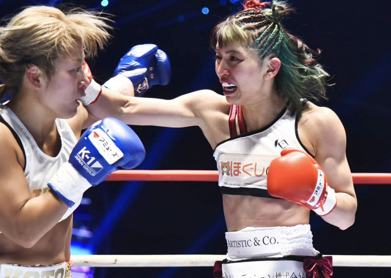 ぱんちゃん(右)が苦戦、元極真全日本王者・平岡との接戦を制した