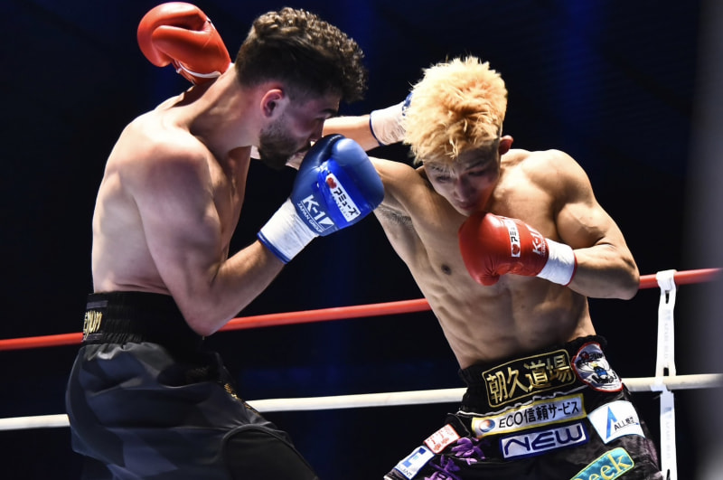 互いのパンチが交差する