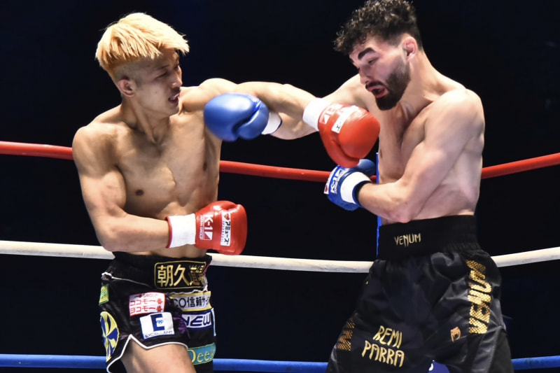 朝久がパンチで攻める