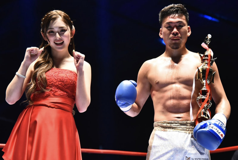 勝利した鈴木(右)と、ゆうちゃみ