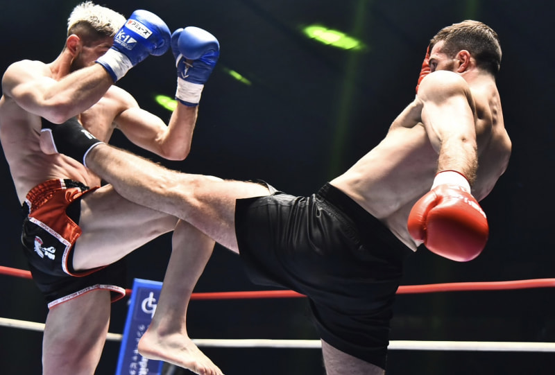 キックを蹴り込むアカピャン