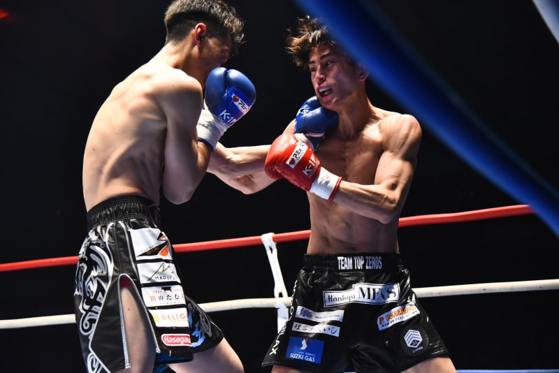 松山(左)もパンチを当てる