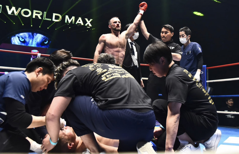 ダウンした中島(左)は、この後、担架で運ばれた