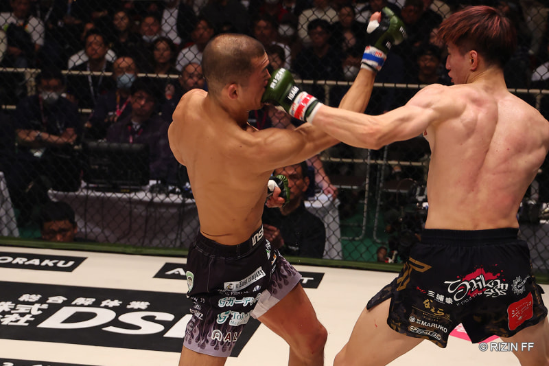 井上が佐藤のアッパーフックをヒット!