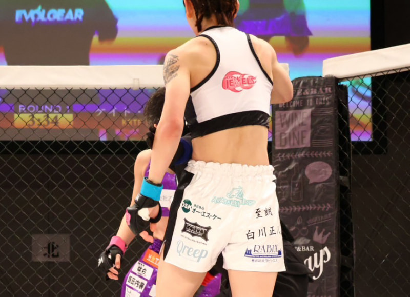 桐生がケイトの連打を被弾し、レフェリーが止めた