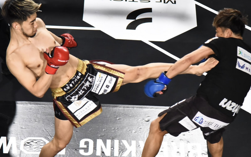 よしきまるが前蹴りを放つ