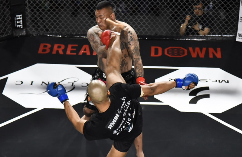 ハイキックを当てるレオン