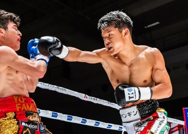 亀田和毅(右)が圧倒しTKO勝利Ⓒ亀田プロモーション