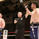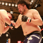 至近距離で打ち合う両者
