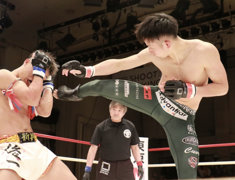 内藤がキックで襲う