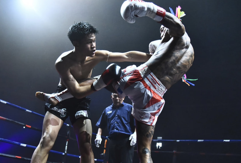 強烈な蹴りを当てるパルコ(右)