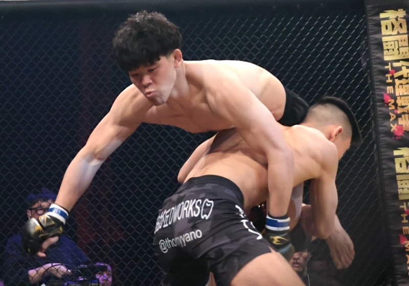 矢野(右)が中谷(左)にタックル!